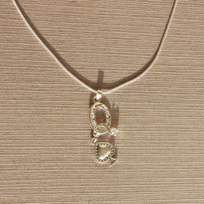A silver plated 21" Euro style snake chain necklace with tibetan silver 'queen of spade' charms.
