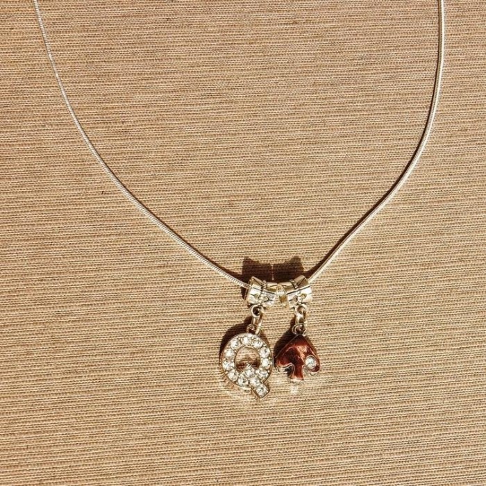 A silver plated 21" (45 cm.) Euro style snake chain necklace with tibetan silver 'queen of spade' charms.
